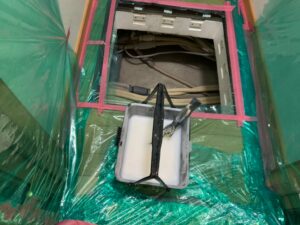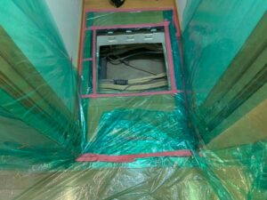 作業の前にまずは床下の埃や塗料が他の箇所に付着したりしないように養生を行います。