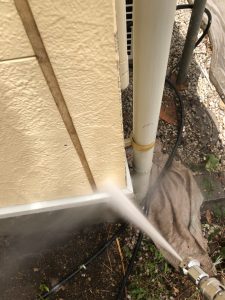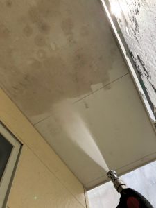 塗装を行う前に、高圧洗浄にて既存の汚れを落とします。