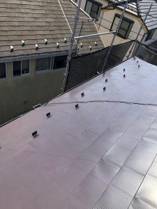 ルーフィングを張った後に、新しい屋根を葺いていきます。