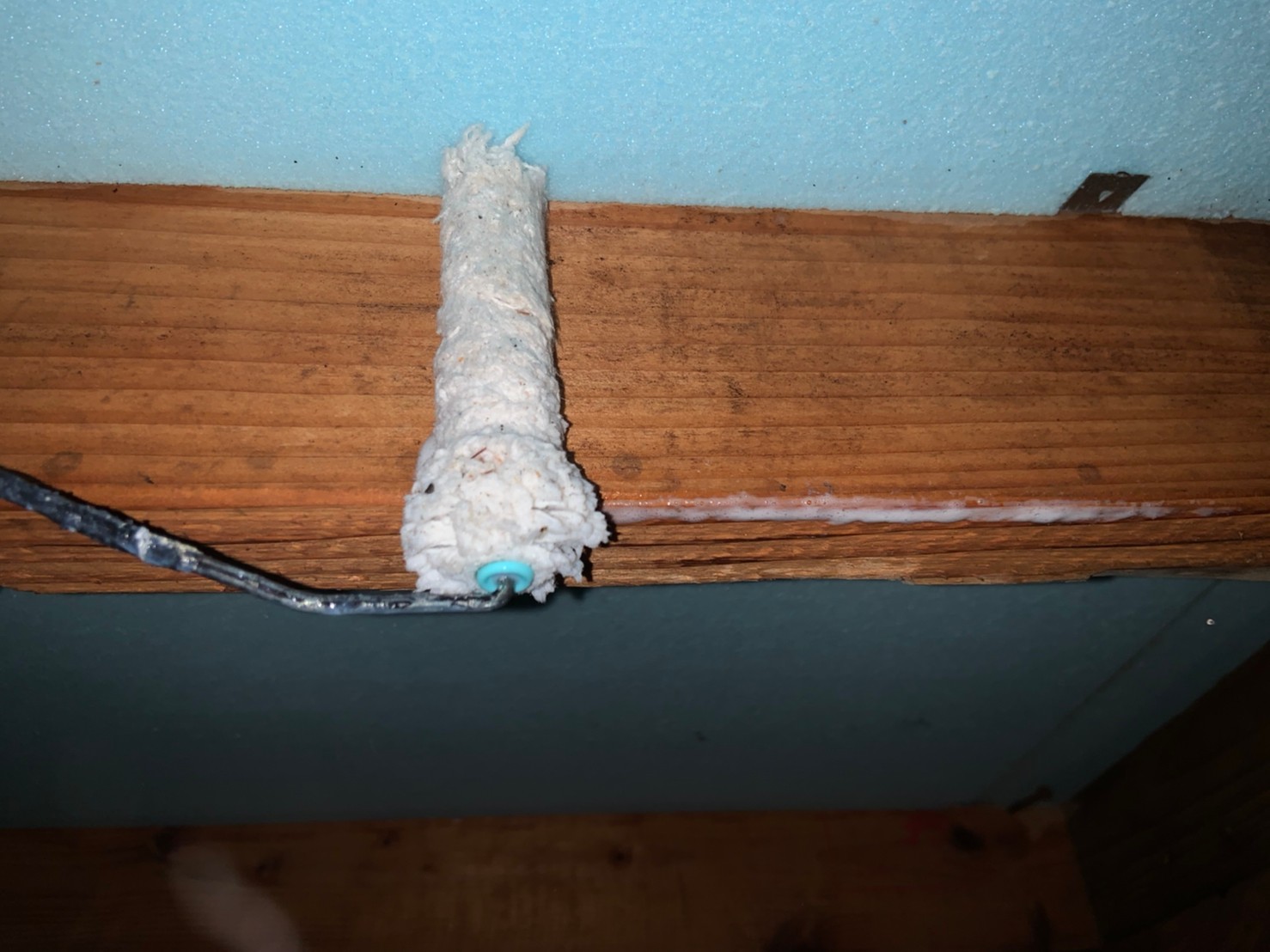 プライマー乾燥後、ウレタン防水材の一回目を塗布していきます。
